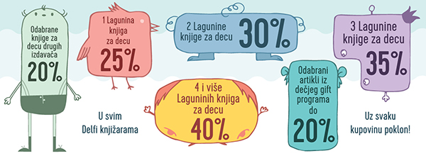 U svim knjižarama Delfi i Laguninim klubovima čitalaca koji se nalaze u Beogradu, Nišu i u još 20 gradova u Srbiji važiće veliki popusti na knjige za decu i mlade, dok će u knjižari u SKC-u biti organizovan raznovrstan program.