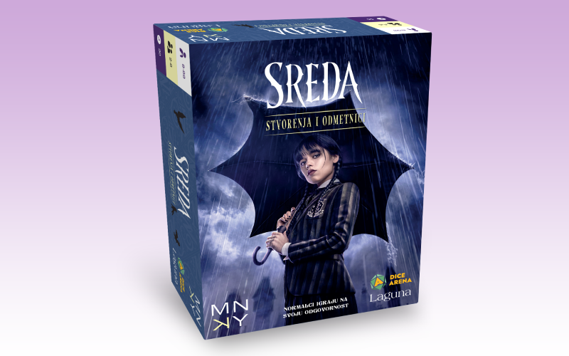 Za sve ljubitelje TV serije „Sreda“, stiže prava poslastica! Dok iščekujete novu epizodu serije, uživajte u fantastičnoj društvenoj igri „Sreda: Stvorenja i odmetnici“ – razoružajte protivnike i hitro odbacite karte!