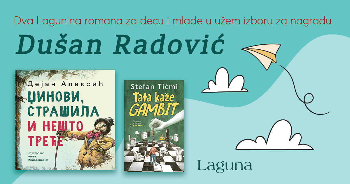 Žiri za dodelu nagrade „Dušan Radović“ za književnost za decu i mlade, u sastavu Miloš Radović (predsednik), Zorica Hadžić i Zorana Opačić, uvrstio je u uži izbor dve knjige u izdanju Lagune: „