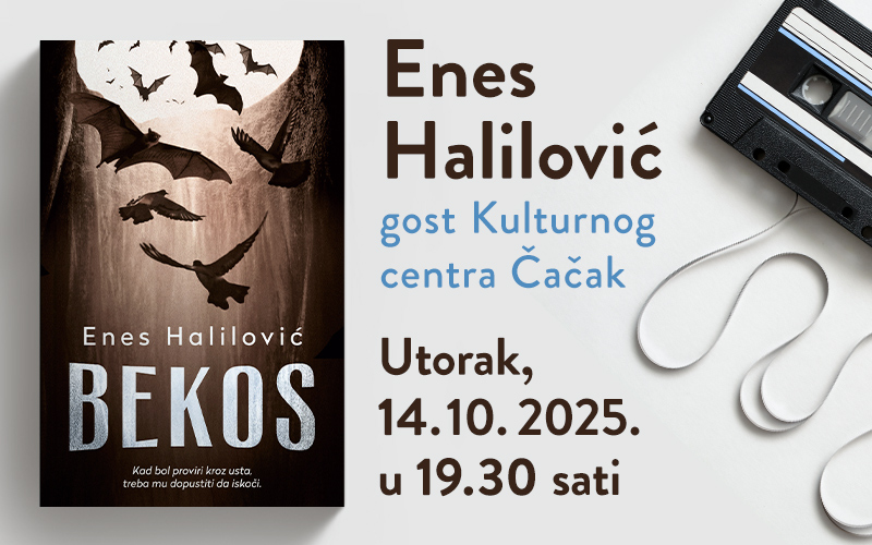 Gost Kulturnog centra Čačak, u utorak 14. oktobra 2025. od 19.30, biće Enes Halilović, jedan od naših najznačajnijih savremenih pisaca. Književno veče, na kome će autor predstaviti svoj novi roman „Bekos“, biće održano u Klubu Kulturnog centra.