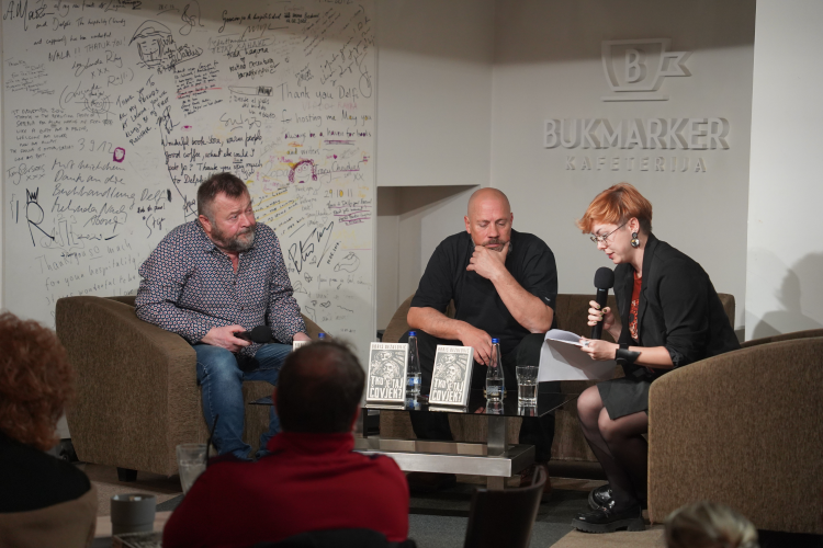 Tko je taj čovjek?: Izvještaj o jednoj mogućnosti“ održana je u petak 24. oktobra u kafeteriji Bukmarker u knjižari Delfi SKC, koja je bila ispunjena do poslednjeg mesta.