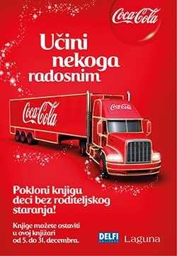 Izdavačka kuća Laguna i ove godine pridružuje se dobrotvornom projektu Coca-Cola novogodišnji karavan koji 15. decembra kreće na svoju dobrotvornu misiju kroz 10 gradova Srbije s ciljem prikupljanja knjiga za decu bez roditeljskog staranja. U saradnji sa Ministarstvom za rad, zapošljavanje, boračka i socijalna pitanja, kompanija Coca-Cola će preurediti po jednu prostoriju u domovima širom Srbije kojima će biti upućena i donacija u knjigama po završetku karavana 1. januara 2016.