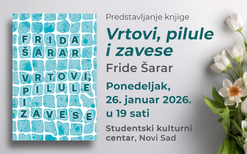 Promocija romana „Vrtovi, pilule i zavese“ Fride Šarar 26. januara u Novom Sadu