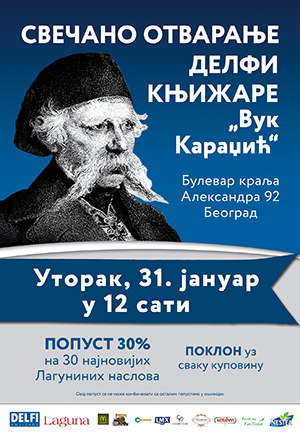 Izdavačka kuća Laguna i knjižarski lanac Delfi nastavljaju da dodeljuju knjižarama imena velikih srpskih pisaca i kulturnih pregalaca koji su ostavili značajan trag u srpskoj književnosti i kulturi. Još jedna u nizu je i Delfi knjižara u Bulevaru kralja Aleksandra 92 u Beogradu, koja će poneti ime „Vuk Karadžić“.